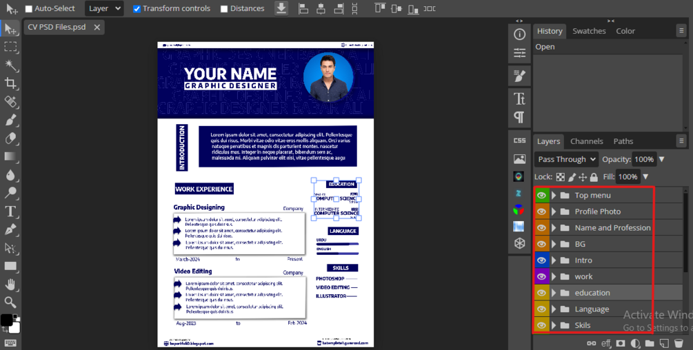 You will get a Fully customizable PSD file for your CV with all files arranged cleanly and properly.